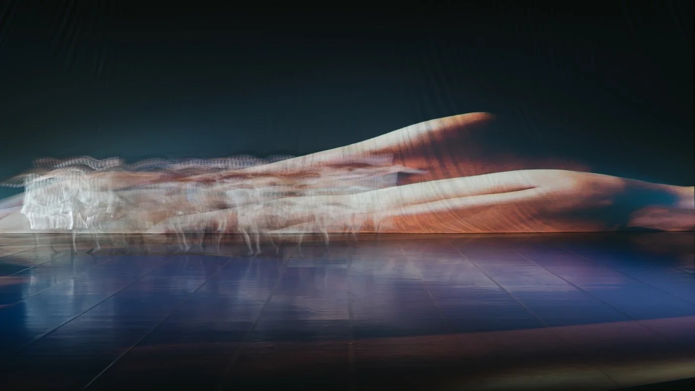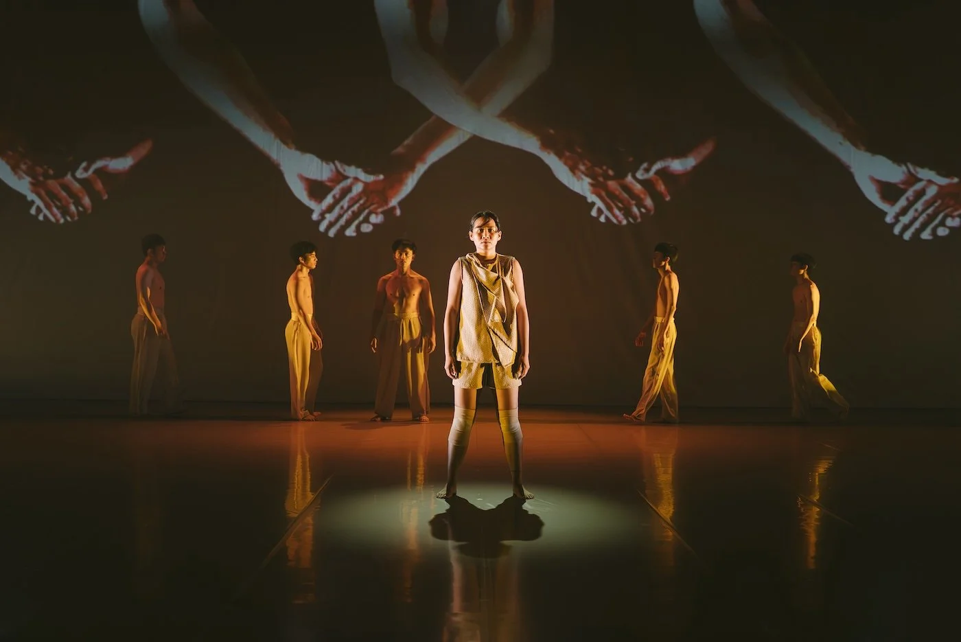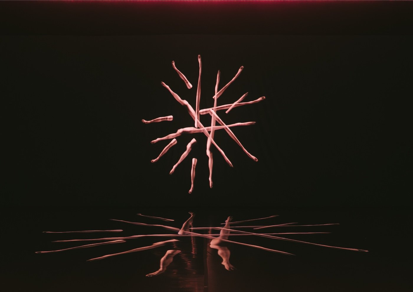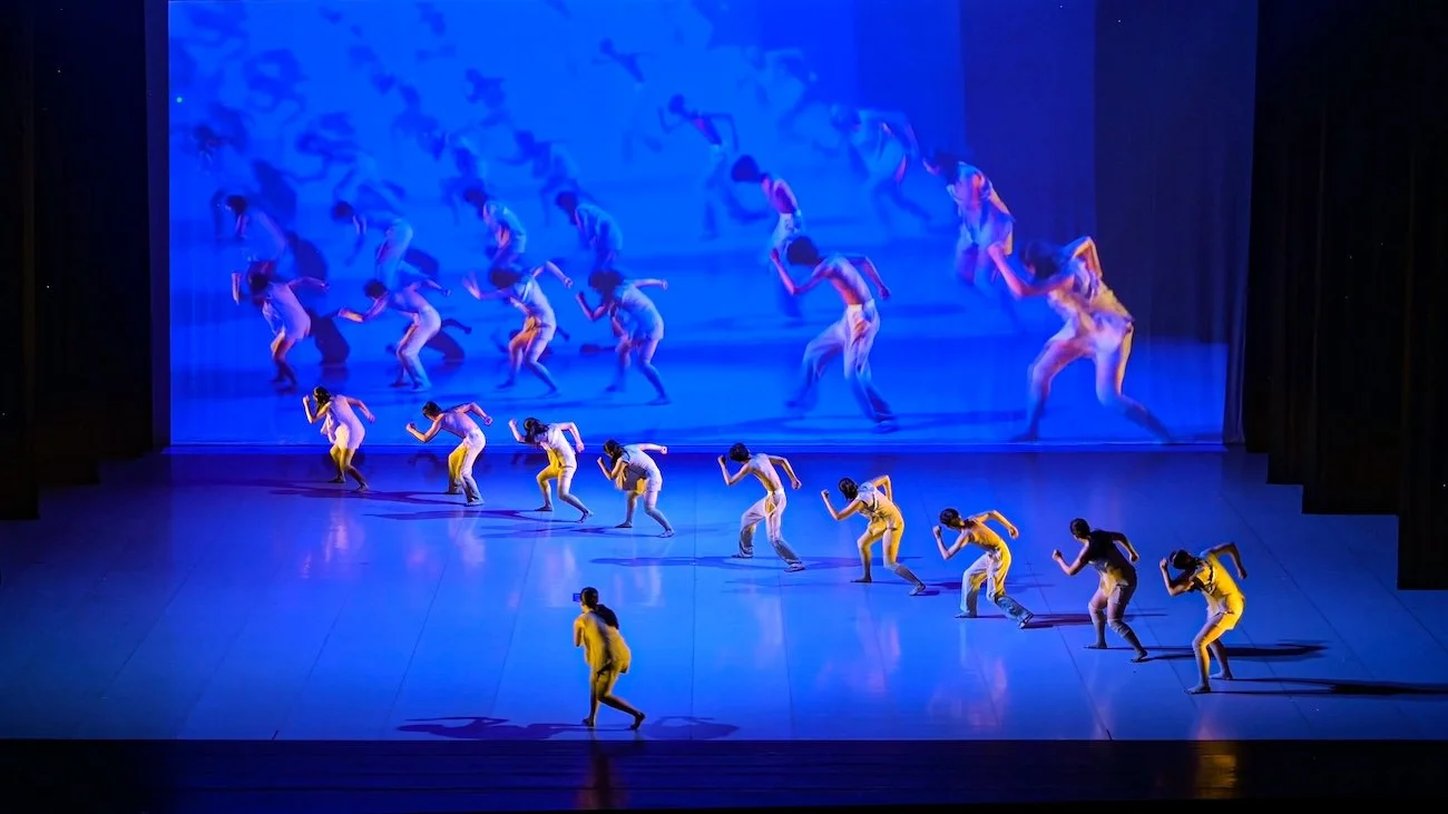 Video & Projection Designer, Lee Kuo Han, deconstructs and reassembles the dancer’s core movements along two narrative threads: