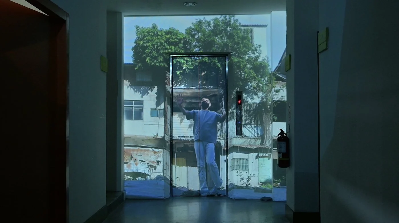 Juxtaposing stationary walls and moving elevator doors, and layering different wall textures, the work stages a dialogue with the soon-to-vanish Taipei Artist Village.