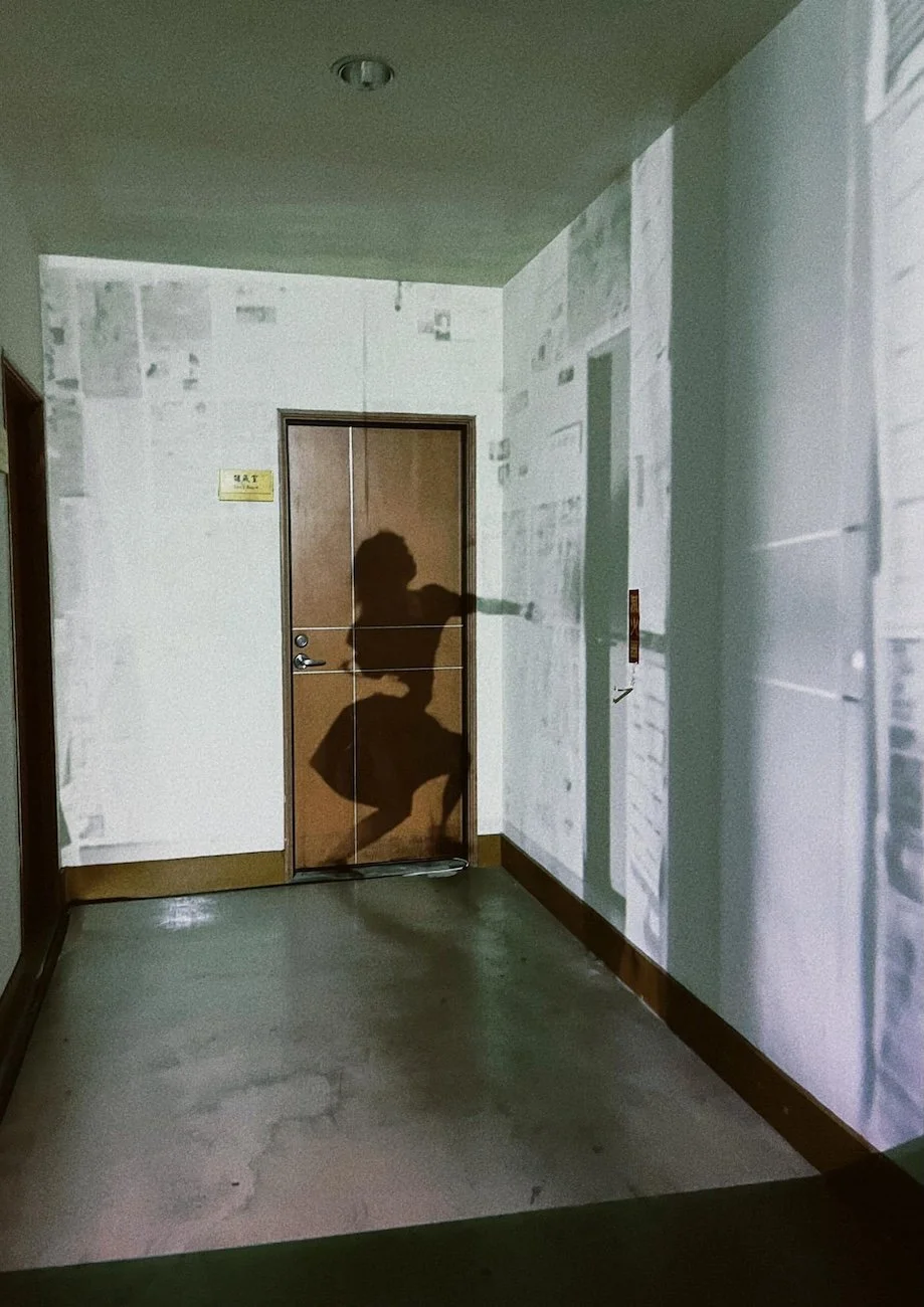 1. The Past Moment — Archival footage from Chou’s 2007 residency is projected onto a stationary wall; its “unchanging” surface embodies the stillness of time.